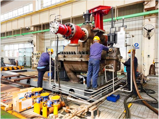 该机组是用户炼油产品调整及油品质量升级改造项目的核心设备,装置的节能改造对用户效益的提升起着关键作用。由于项目整体改造周期短,为确保机组按期交货,非凡国际汽轮机团队从前期产品的技术准备,以及零部件加工制造、配套件协作采购等各个环节都做到了精心策划,科学组织,使得该机组生产得以顺利推进。然而突如其来的新冠病毒疫情严重影响了既定计划的执行,本着“用户永远是对的”和“全心全意为用户服务,全力满足用户需求”的工作理念,项目团队按照集团公司党委提出的“疫情防控和生产履约两手抓”总体要求,在确保防疫各项工作到位的前提下,积极组织团队成员参与到复工生产中。大家加班加点,协同作战,攻坚克难,复工仅一周时间,机组便完成了装配工序,也创下了该类型汽轮机组装的最短周期。