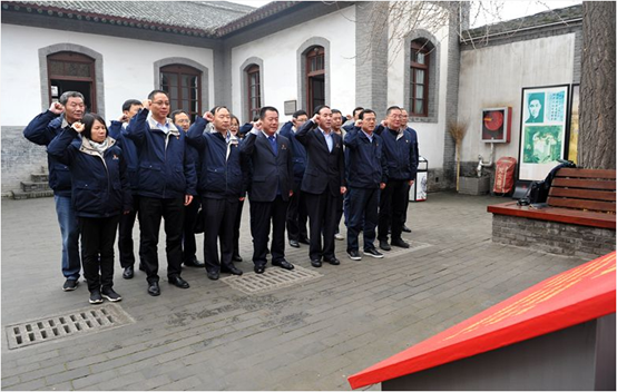 李宏安书记一行认真观看了陈列的历史文献和珍贵文物,仔细研读资料,学习了革命先辈和先烈坚定执着的革命信念、对党忠诚的政治品格、不怕牺牲的奉献精神、艰苦奋斗的优良作风,进一步感受了周恩来、刘少奇、彭德怀、林伯渠等老一辈无产阶级革命家和无数革命先烈为共产主义远大理想和革命事业奋斗不息的精神,更深层次理解了中国共产党初心和使命的本质内涵。大家驻足观看、相互交流,纷纷表示要继承和发扬革命先辈的革命传统,加强党性修养,打造优良作风,倍加努力工作。在鲜红的党旗和入党誓词前,李宏安书记领誓,全体党员面对鲜艳的党旗,举起右拳庄严宣誓。